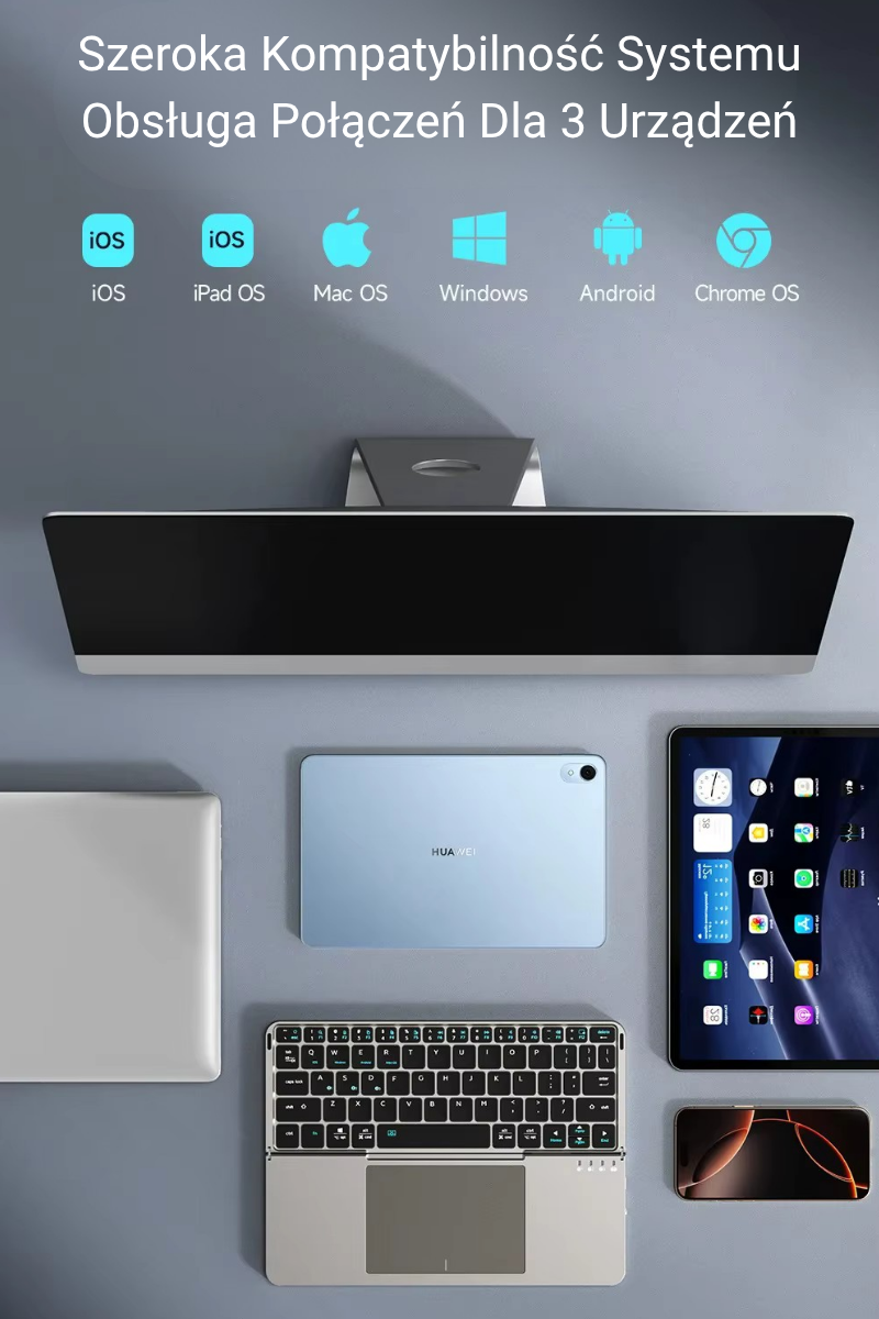 Nasza składana klawiatura bezprzewodowa działa z niemal każdym urządzeniem! Bez problemu połączysz ją z laptopem, tabletem czy smartfonem – niezależnie od tego, czy korzystasz z Windows, macOS, iOS, Android czy innych popularnych systemów. Dzięki technologii Bluetooth parowanie jest szybkie, a połączenie stabilne.